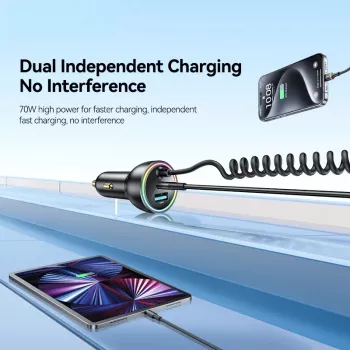 70W USB-C Car Charger with Fast-Charging Spring Cable